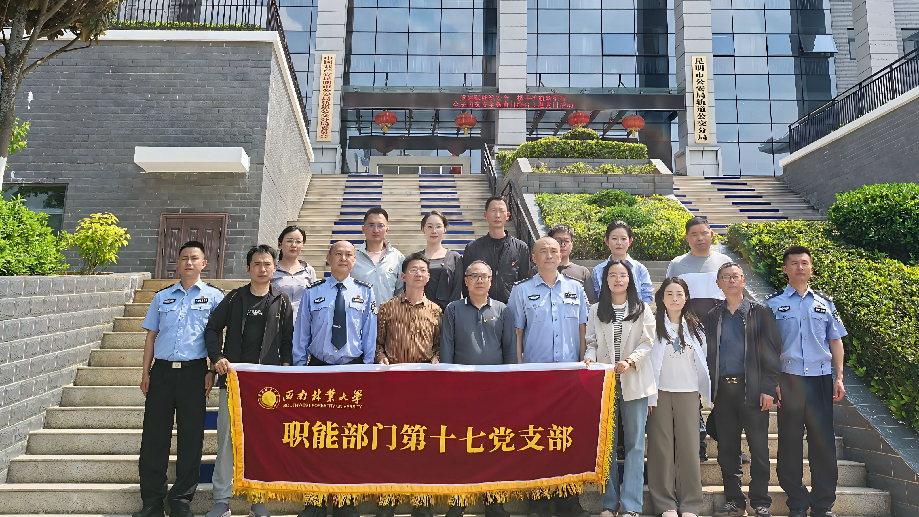 4月17日,职能部门党委第十七支部与第八支部组织党员前往昆明市公安局轨道公交分局,开展全民国家安全教育日联合主题党日活动,推动总体国家安全观入脑入心。活动中,党员们先后参观安全教育展示区与指挥中心,认真聆听讲解员介绍无人机、智能机器狗等新型警用装备在公共交通安保领域的实战应用,现场观摩警犬训练科目展示,全面了解城市轨道交通在安全防控、应急处置、反恐防暴等方面的运行机制与工作成效。参观结束后,两个支部与分局相关人员围绕“...